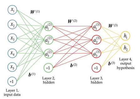 单层神经网络会面临一个问题,也就是只能解决线性可分的情况,对于更复杂的分类问题,单层神经网络无能为力。多层(大于等于两层)神经网络可以通过多层的非线性变换来解决复杂的问题。事实上,一个具有线性输出单元的单隐藏层神经网络,只要有足够多的隐藏单元,就可以任意好地近似任何连续函数。