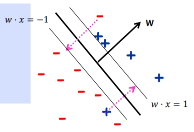 For all \(i\),\(y_i\omega\cdot x_i \geq 1-\xi_i\),\(\xi_i \geq 0\)